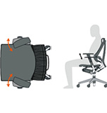 - 背もたれランバー部が前方にせりだすアクティブ・ランバー・サポート(A.L.S)機構により、深掛け前傾時や浅掛け時も腰をしっかりサポートします。
