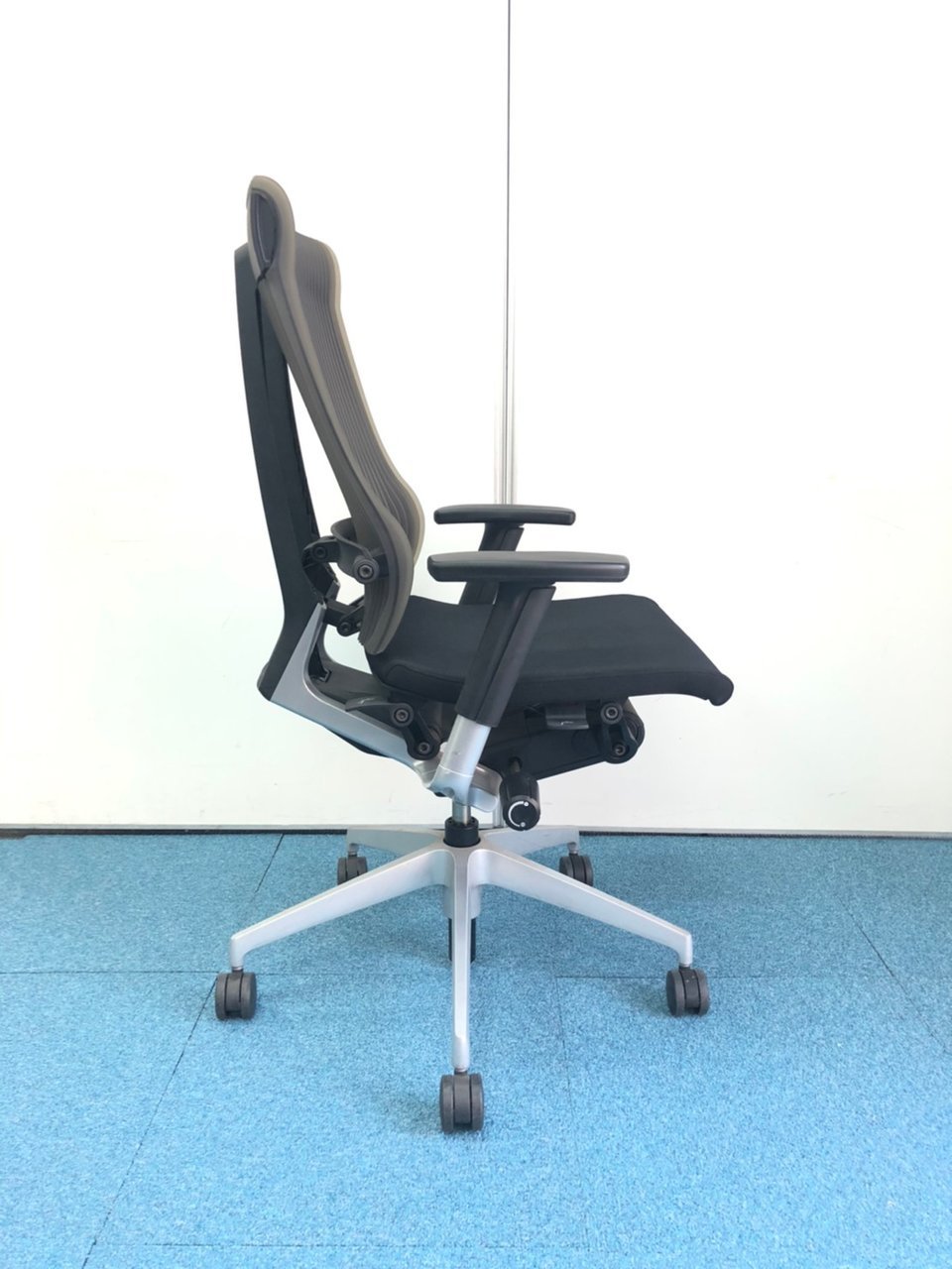一番の特長は、着座時にチェアがピタっと体にフィットしてくれることです。 人がチェアの座り心地を調節するのではなく、チェアが人に合わせて動くのです!着座時に座面が沈み込みながら後方へスライドし、それと同時に背もたれの腰部分が前にせり出し、「ずっと座っていたくなる」と言われるほどの座り心地に調節してくれます。それを実現しているのが、A.L.S(アクティブ・ランバー・サポート)機構とP.S.S(パッシブ・スライド・シート)機構です。 さらに、背もたれにかかる体圧を徹底的に分析して作られた絶妙なカーブが、常に腰をサポートしつつ背骨のラインに沿ってくれます。