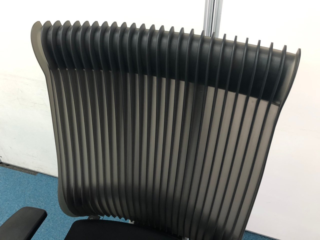 見た目は少し硬そうに見えるエラストマー素材ですが、座ってみると程よいしなり具合のやわらかな座り心地で、背中が痛くなるようなことはまるでありません。面ではなく線で支えることで、背面の通気性の良さは抜群です。