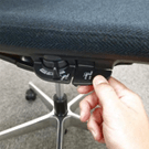 - 座面の高さ調節や背と座がシンクロしてスライドするアンクルチルトリクライニングなど、基本的な調節機能を搭載。