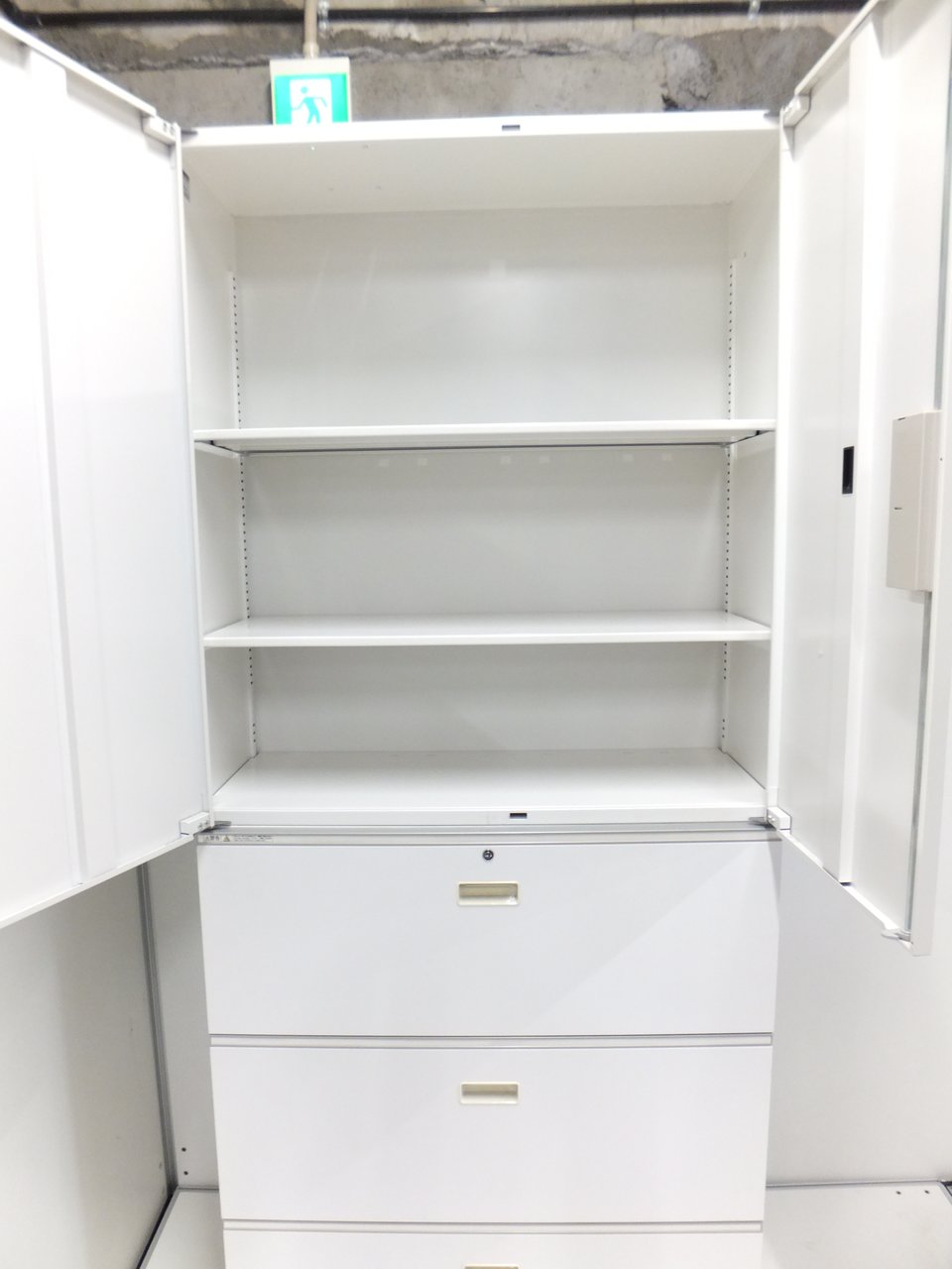 【オフィスを明るくするホワイト】イトーキ製 シンライン 書庫セット(3段ラテラル+両開き)【大容量収納】【シリンダー錠】