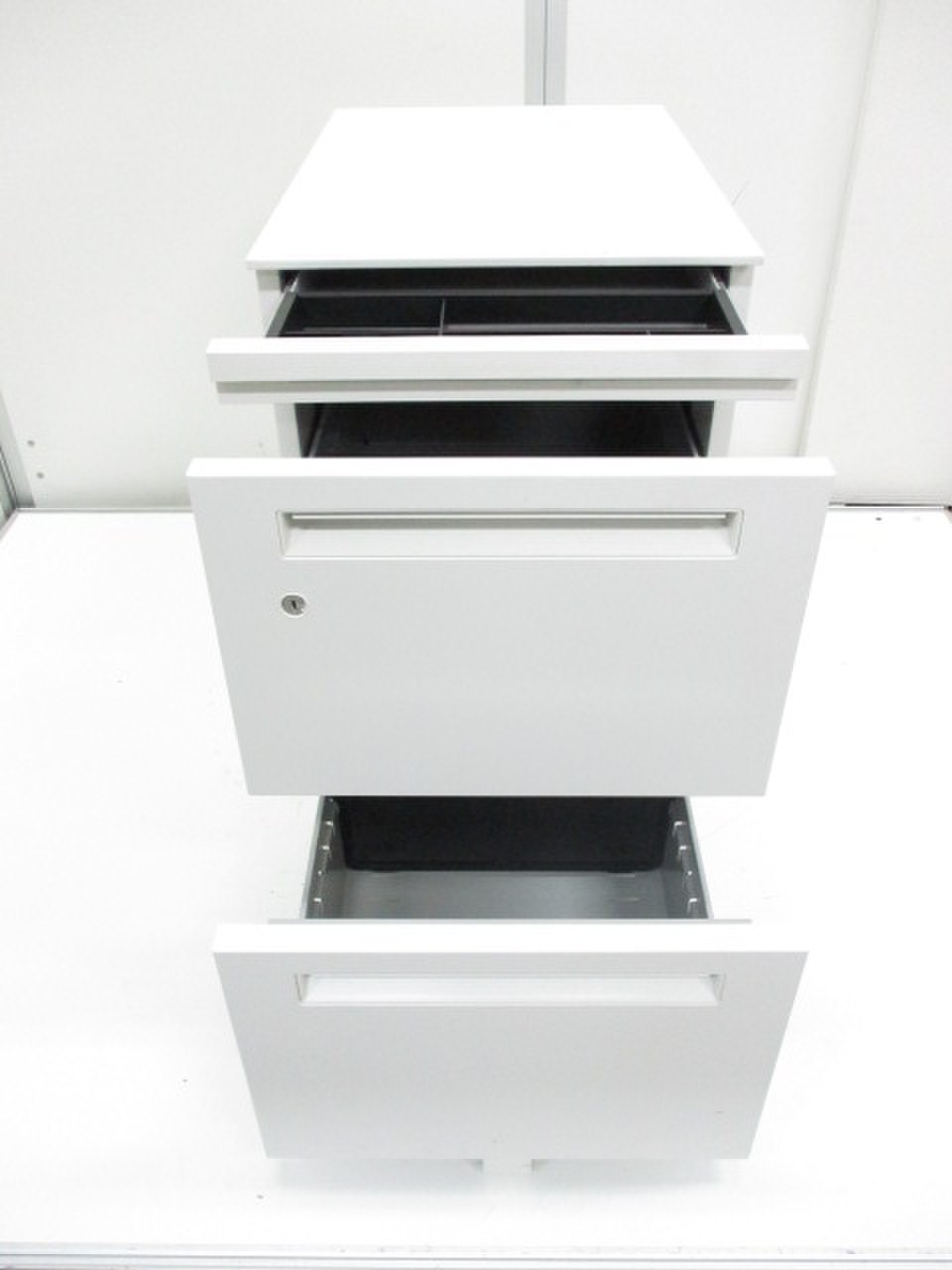 - 一部不具合ありその脇机・ワゴンの本来の効用を果たすための機能以外の一部が使用不可な状態。(例、引出が開閉しづらい、 キャスターロック機能使用不可、ラッチ不良 等がある。)