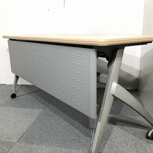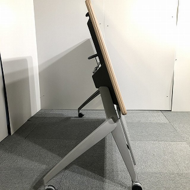 木目天板の折りたたみ可能なミーティング用テーブルになります。
