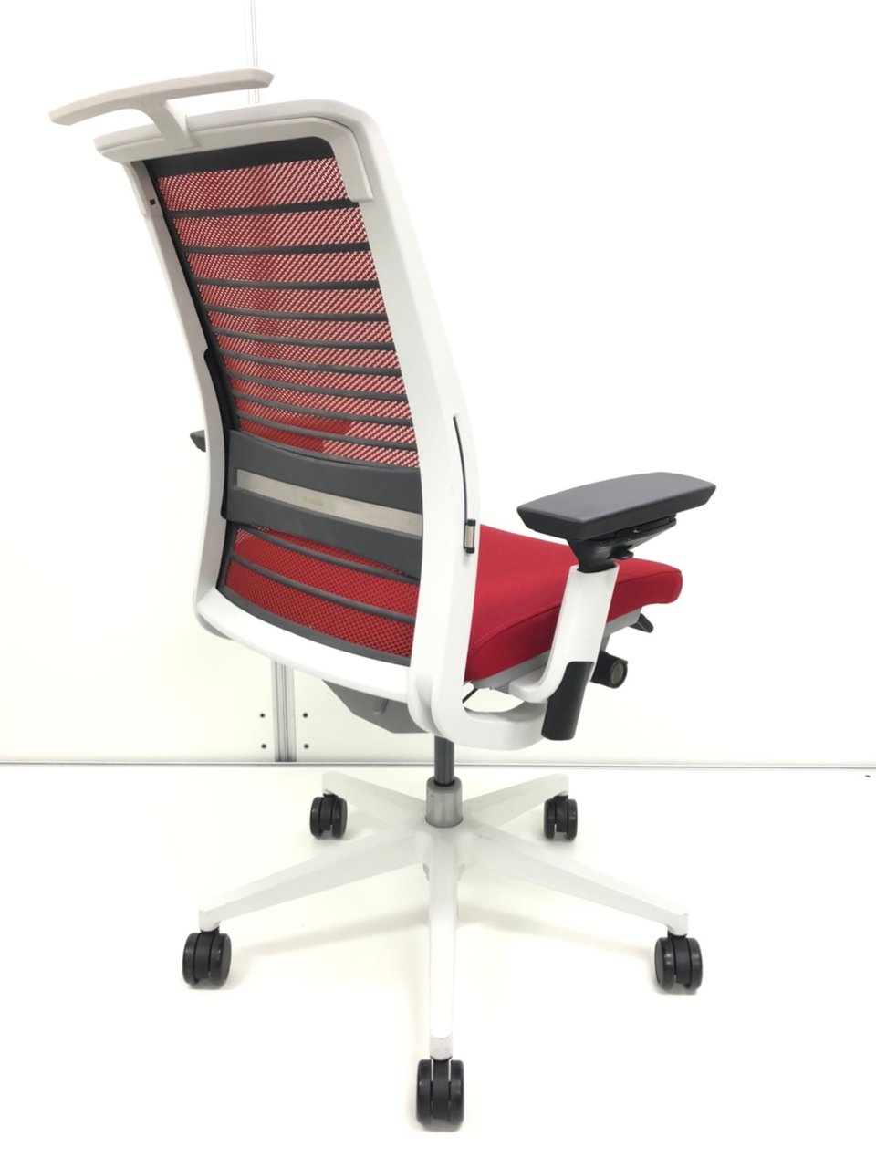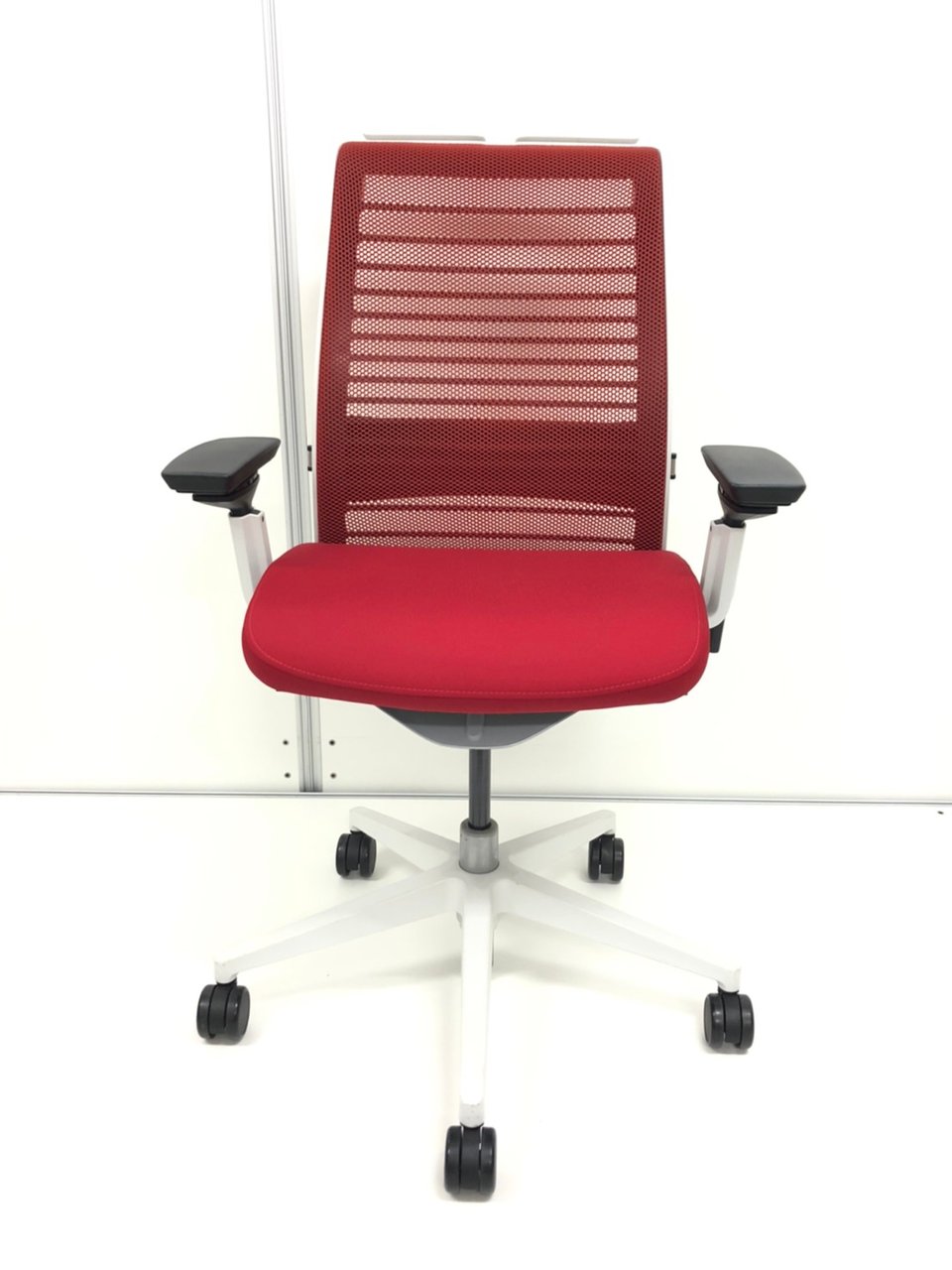 【現行タイプ】スチールケース/シンク※新型/レッド/可動肘/ランバー付き※腰痛防止