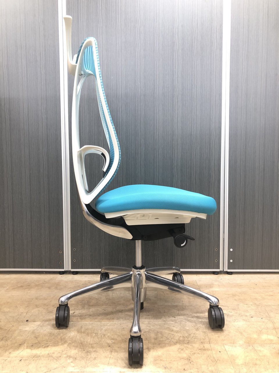 【在庫2点!】オカムラ製 サブリナチェア ブルー×ホワイトカラー 肘無しハイバック【人気商品】【爽やかなブルー】【国内メーカー】