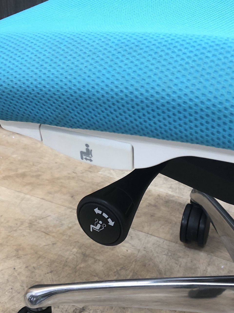 サブリナはオカムラ製のオフィスシーティングです★シルフィーの上位モデル ランバーサポート付き ハンガー付 ブルーグリーン