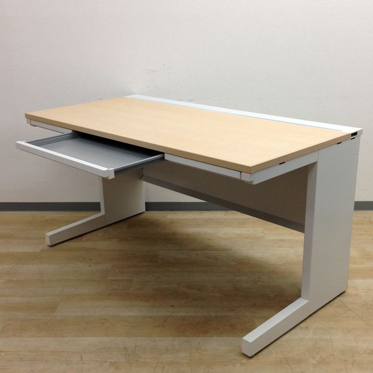 【幅広1400mm直線配線口でケーブル収納が楽々!!内田洋行製・平机・スカエナ【ナチュラル天板】