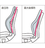 - 女性の作業姿勢に多く見られる2つの姿勢を、美しく支える背もたれ形状です。後傾しても背のラインを崩しません。