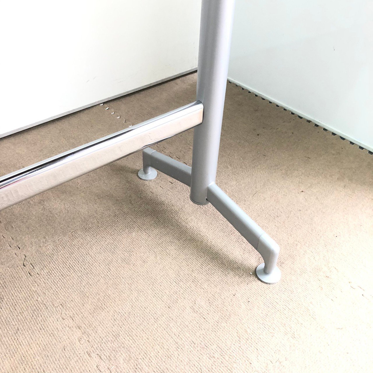 - 一部不具合あり天板歪み、アジャスター無し、キャスター使用不可ようなそのテーブルの本来の効用を果たすための機能以外の一部が使用不可な状態。(例、キャスターロッ ク機能使用不可、棚板無し等がある。)