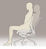 - 座部のインナーシェル(芯材:ポリプロピレン樹脂製)には、最適な個所が着座荷重に応じて自在にたわむように多数のスリットを設けていま す。フレキシブルに姿勢変化に対応し、からだになじむ座り心地を実現しました。