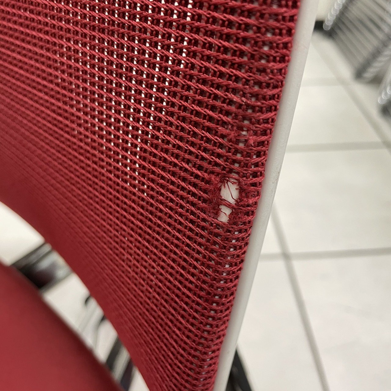 - 目立つ箇所あり傷・破れ・ほつれ・へたり・しわが多数または深い傷・破れ・ほつれ・へたり・しわが一部ある。※座面・背もたれ、シェル、脚部等にある。