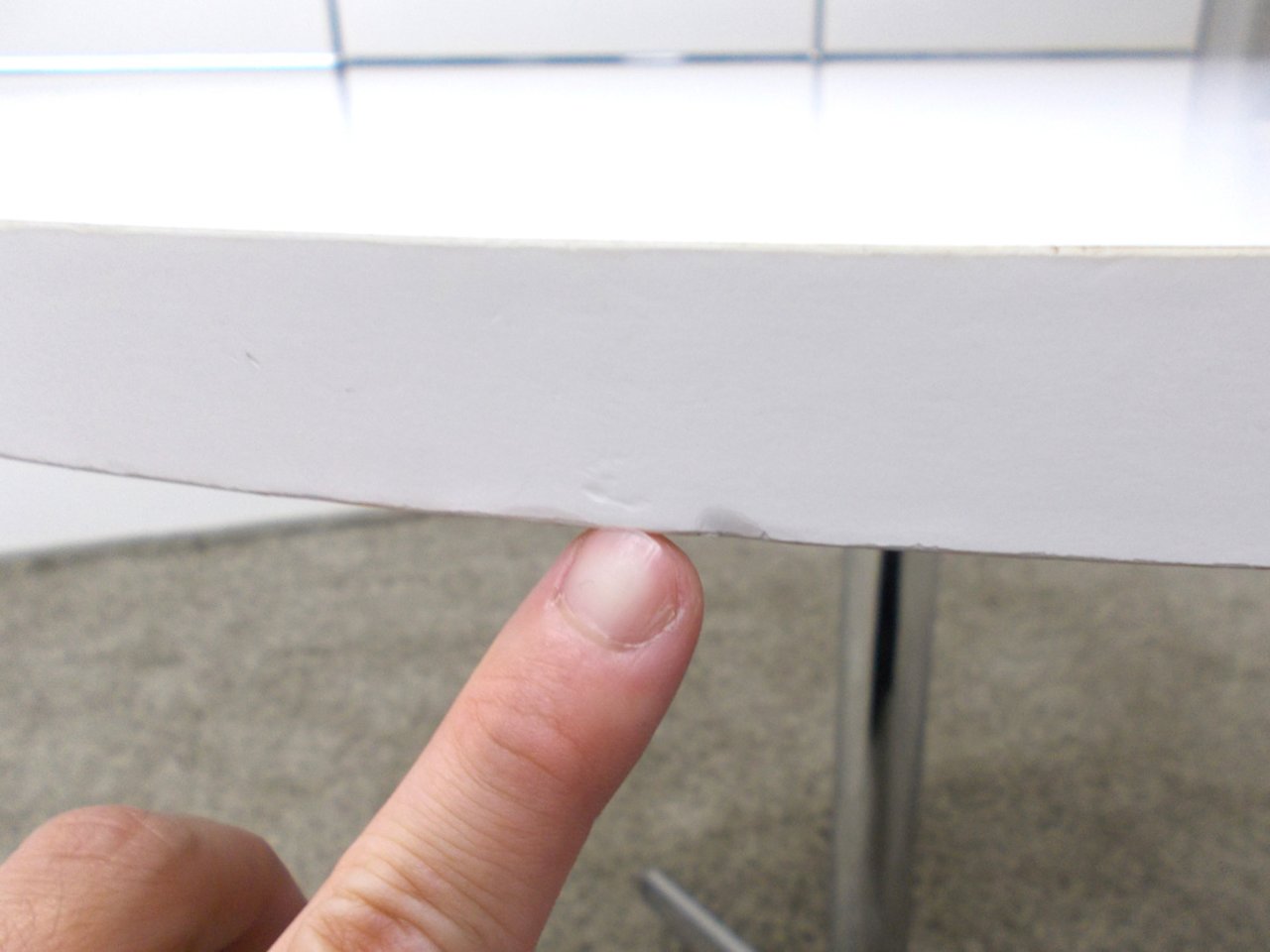 - 壊れている天板歪み、アジャスター無し、キャスター使用不可のようにそのテーブルの本来の効用を果たすための機能に不具合がある。
