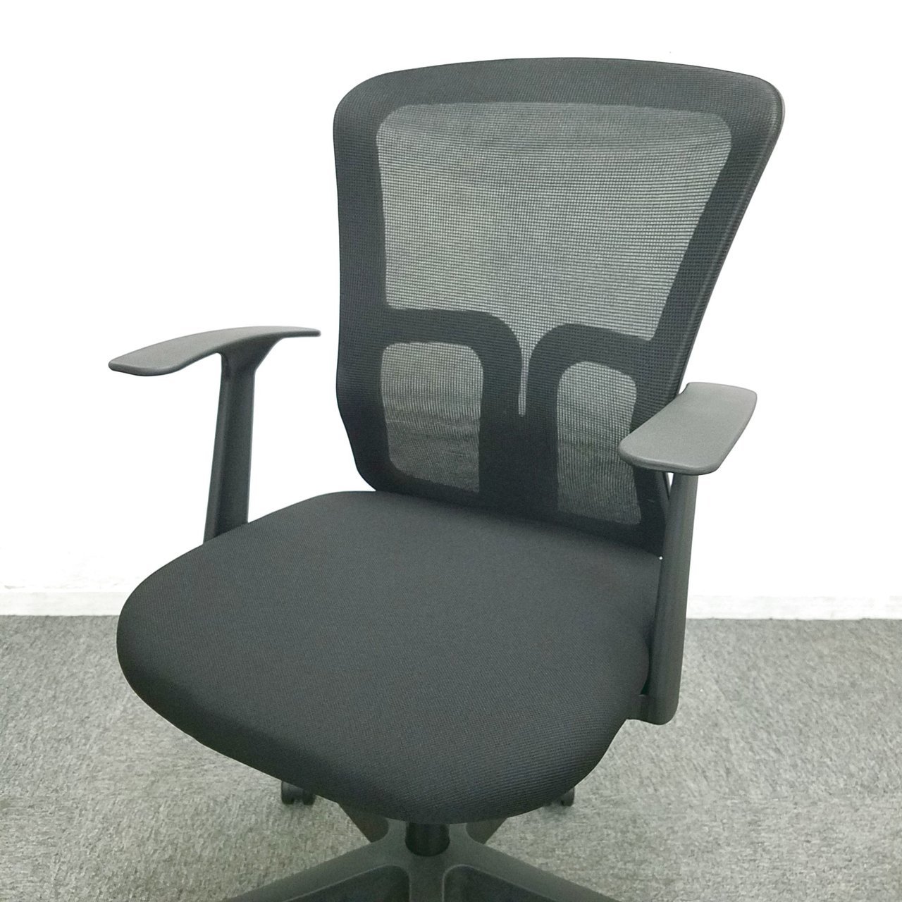 【未開封品がお買い得!】■メッシュバックチェア 肘付 ブラック【おつとめ品】【J】