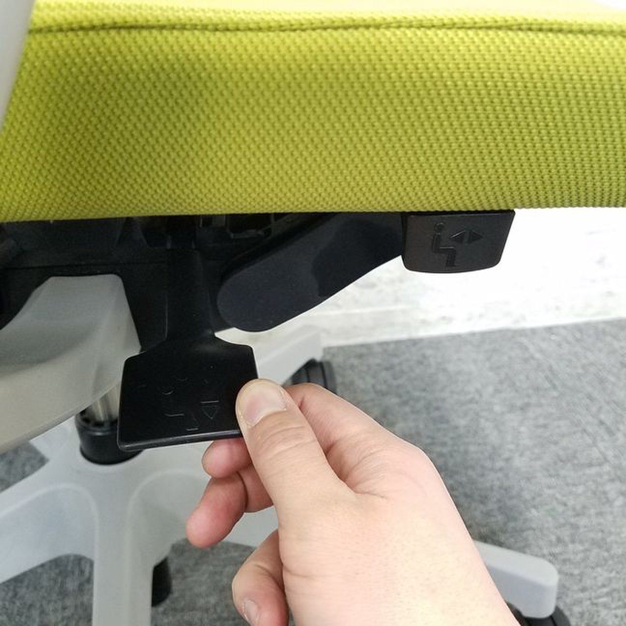 - 座面下のレバー操作により、座面を50mmのストローク(16.7mmピッチ)で好みの位置に調節できます。体格や作業姿勢に合わせたポジション設定が行えます。
