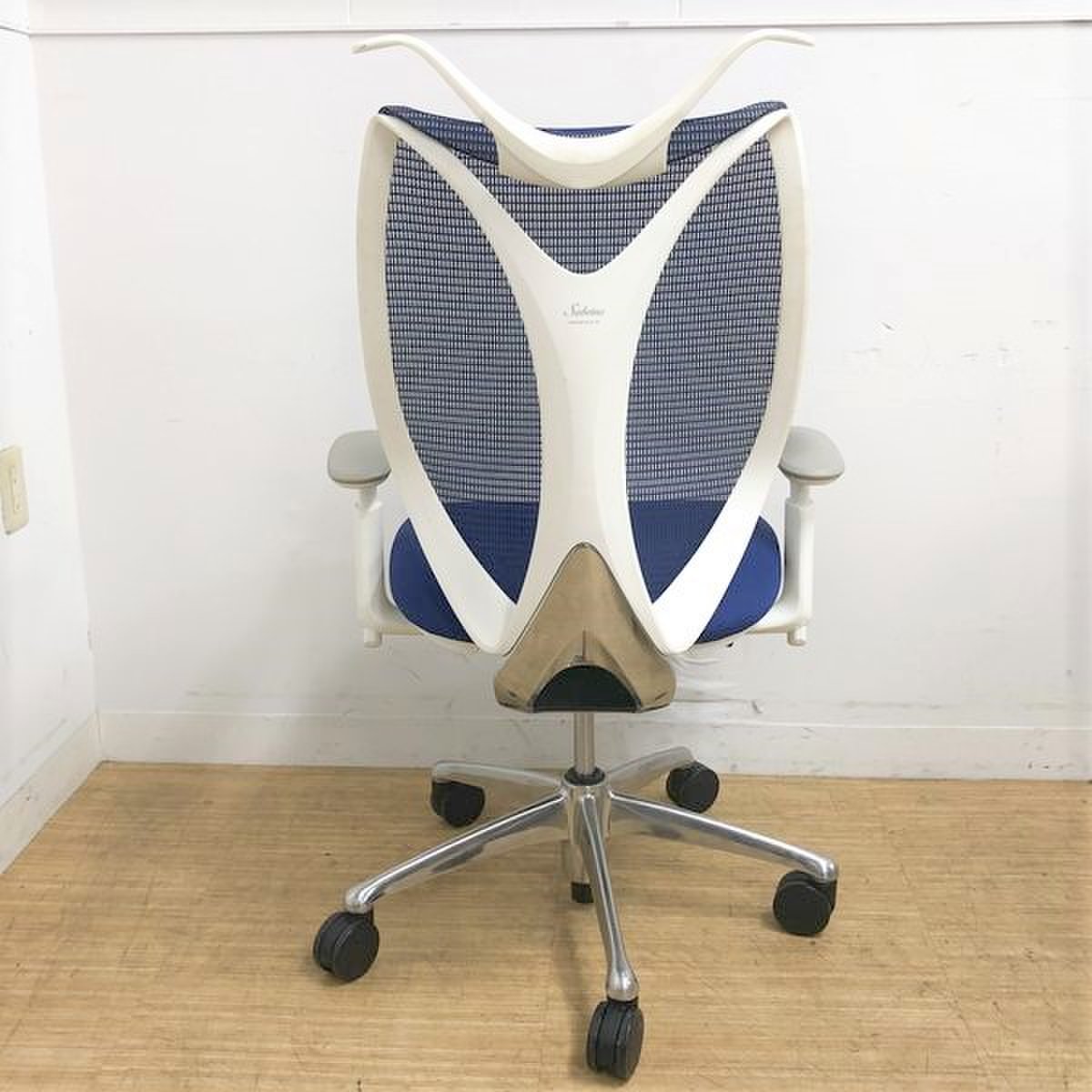 【入荷商品】【4脚入荷】オカムラ製 サブリナチェア ブルー×ホワイトカラー 【可動肘】【背面メッシュ】【通気性抜群】【国内メーカー】