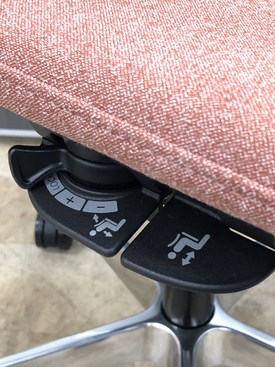 座面右下に全ての操作レバーを集約している為、