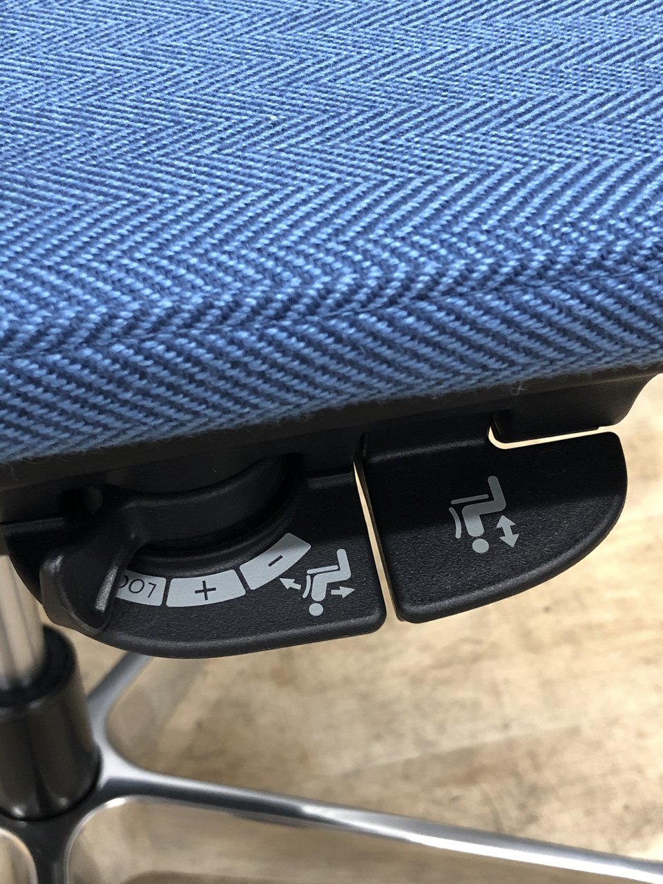 座面右下に全ての操作レバーを集約している為、
