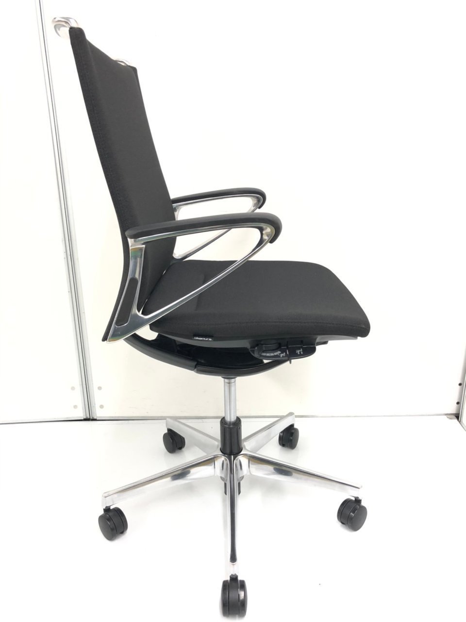 - 座面の高さ調節や背と座がシンクロしてスライドするアンクルチルトリクライニングなど、基本的な調節機能を搭載。