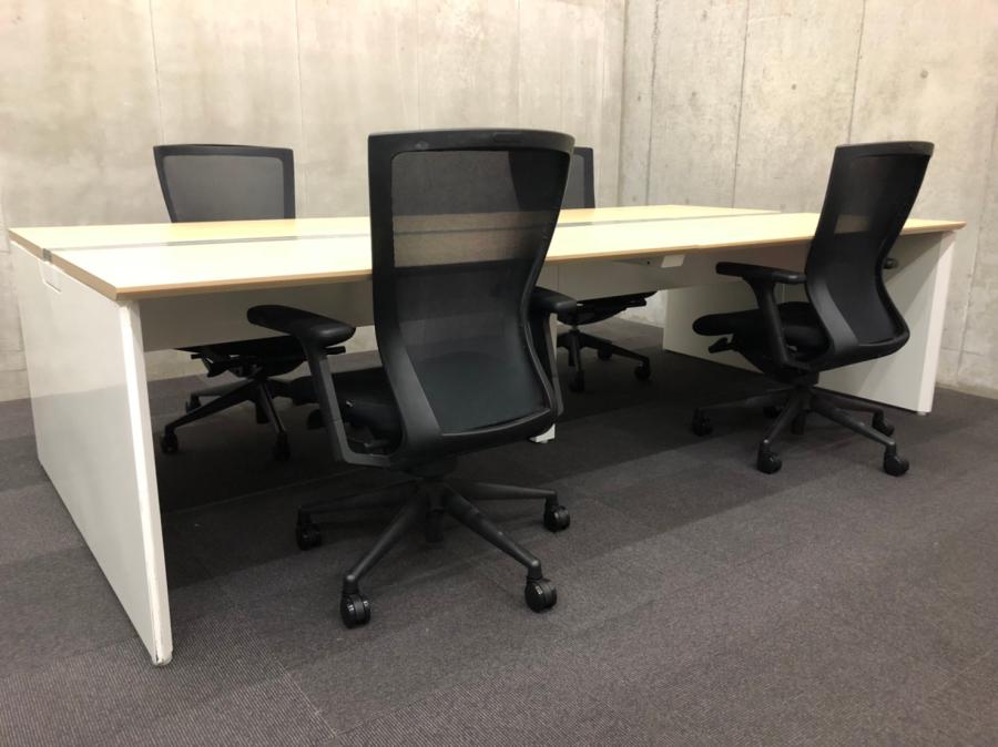 【2400㎜】【イトーキ製】【ナチュラル】【インターリンク】【フリーアドレスデスク】【4名様】【レイアウト変更】【共有】【シェア】