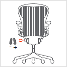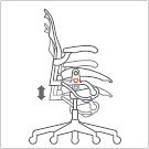- 背もたれの裏にあるランバーサポート(パッド) の厚さは裏表で調節。上下の移動で、適切な高さ に調節できます。