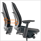 - 脊髄への負荷を軽減します。(もたれとのすき間を埋めて脊髄の自然なカーブをキープします)背もたれの上下独立した調節機構は、リープチェアだけが持つテクノロジーです。