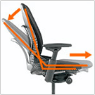 - さまざまな人の体格にフィットさせるために、座の奥行きを調整できます。また、後傾作業時に座奥を大きく取ることにより、ゆったりと使用できます。